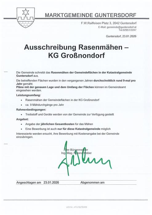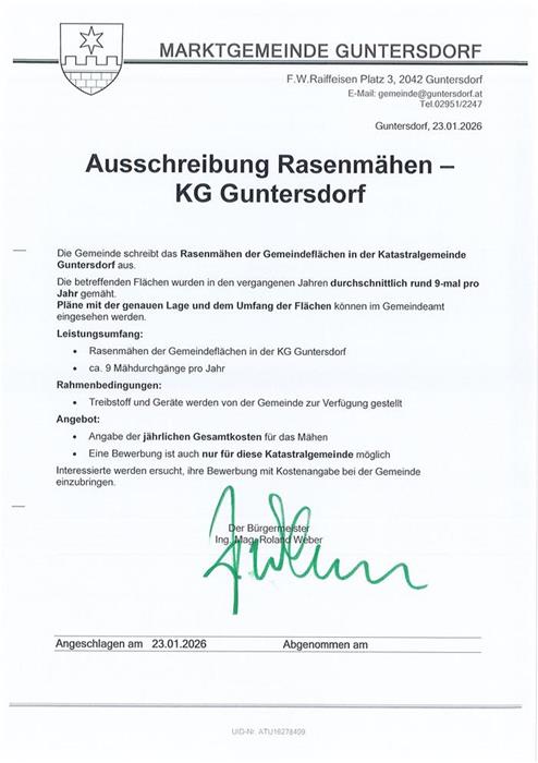 Kundmachung Ausschreibung Rasenmähen KG Guntersdorf [PDF]
