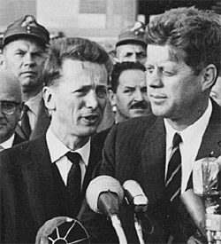 Es blieb nicht dabei, die wirtschaftliche Sektion des Bundeskanzleramtes auch bei dieser politisch heiklen Veranstaltung zu vertreten, der sprachgewandte Jungdiplomat übersetzte phasenweise auch für Präsident Kennedy.