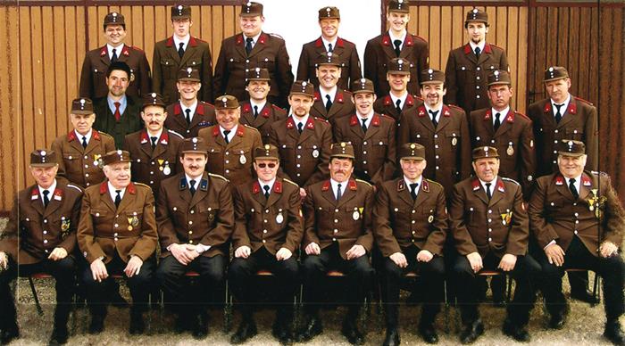 1.Reihe v. li.: Leopold EDER, Karl ZEITLBERGER, Karl ROHRINGER, Franz WINDISCH, Adolf BACHL, Pater Ludwig Maria GMOSER, Alois PFEIFER, Karl FLEISCHMANN, 2. Reihe v. li.: Ignaz DUNGL, Erwin PFEIFER, Ernst PFEIFER, Leopold WEINBUB, Markus BACHL, Wolfgang BAUER, Leopold ROHRINGER, Gerhard ALTENBURGER, 3. Reihe v. li.: Günther BRADAC, Martin HAUSGNOST, Erwin PETZ, Josef PETZ, Walter PLESSL, 4. Reihe v. li.: Josef EDER, Michael ROHRINGER, Roman HAUSGNOST, Leo ROHRINGER, Alexander WINDISCH, Reinhard FLEISCHMANN