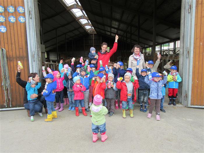Der diesjährige Familienausflug des Kindergartens führte uns nach Eitzersthal zur Familie Wasner. Die Kinder und deren Eltern durften dort den Kuhstall besichtigen, Kühe füttern, verschiedene Milchprodukte kosten oder "melken".