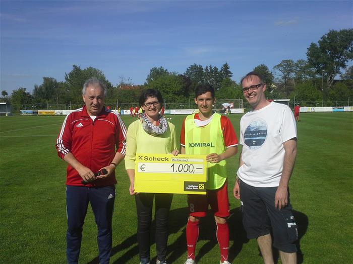 Überreichung des 1000,- Euro Schecks an den SC Guntersdorf zur Nachwuchsförderung, durch die Obfrau des DEV Guntersdorf Elisabeth Gehringer, im Rahmen des Heimspieles gegen Eggenburg am 21.05.2016.