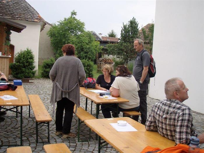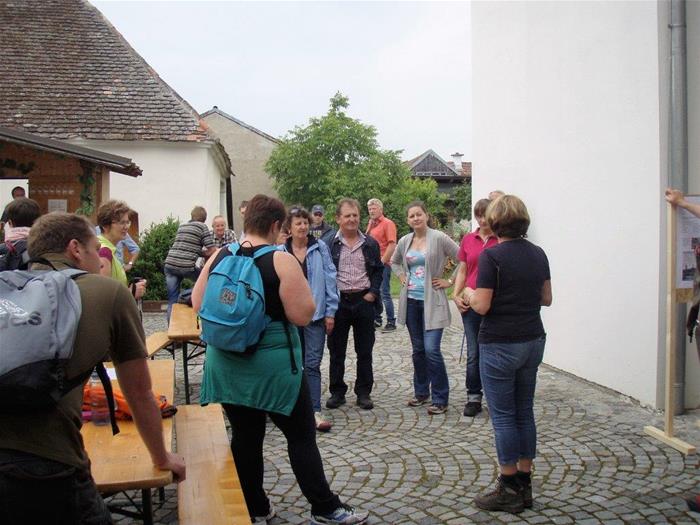 Trotz des unbeständigen Wetters kamen einige Wanderbegeisterte zur Veranstaltung. Für alle Durstigen gab es auch eine Labstadtion zur Stärkung. Begleiter waren auch Bürgermeister Mag. Roland Weber und Vizebürgermeister Ernst Binder.