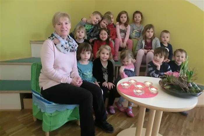 Ganz vorne in die Gratulantenschar reihten sich ihre kleinen Schützlinge, die dafür von ihr mit einer leckeren Jause verwöhnt wurden.