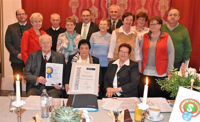 Nach den Grußworten der Ehrengäste wurde Obfrau GUGLER anlässlich ihres bevorstehenden 80. Geburtstages am 22. Dezember 2017, sowohl seitens der Niederösterreichischen Volkspartei, wie auch vom Niederösterreichischen Seniorenbund mit jeweils einer Urkunde "Dank und Anerkennung" ausgezeichnet bzw. gratuliert.