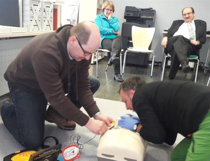 Die Marktgemeinde Guntersdorf hat beim Roten Kreuz Hollabrunn einen Defibrillator samt "Sorglospaket" angeschafft. Dieses Paket beinhaltet neben einer Wartung für 5 Jahre auch die Einschulung am Gerät sowie das Üben der notwendigen Ersten Hilfe Maßnahmen. Die Anschaffungskosten übernahm die Gemeinde und als Aufstellungsort fungiert die Raika Guntersdorf. Zahlreiche Teilnehmer konnte Rotkreuzmitarbeiter Harald Schöber bei der Übergabe und Schulung begrüßen. Bürgermeister Ing. Roland Weber sowie Raika Direktor Gerhard Dungl nahmen ebenso wie zahlreiche Gemeindebedienstete am Vortrag teil. Die Gemeinde ist nun "Defi-Fit" und hofft dadurch für noch mehr Sicherheit gesorgt zu haben.