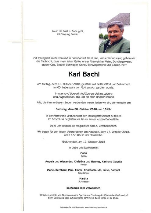 Unser Mitgefühl gilt in diesen schweren Stunden vor allem seiner Familie. Wir sind sehr betroffen und erschüttert über die Todesnachricht. Mit Karl Bachl verliert