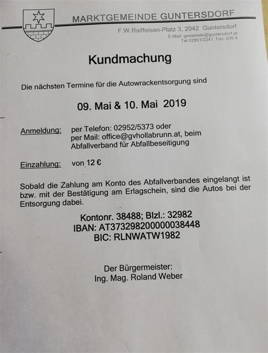 Autowrackentsorgung 09. Mai und 10. Mai 2019 [TIF]