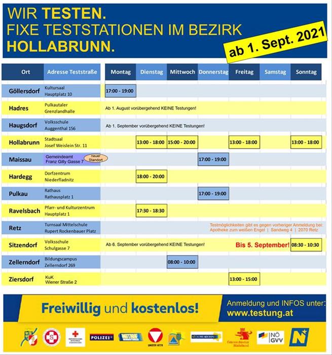 Testen im Bezirk ab 1. September