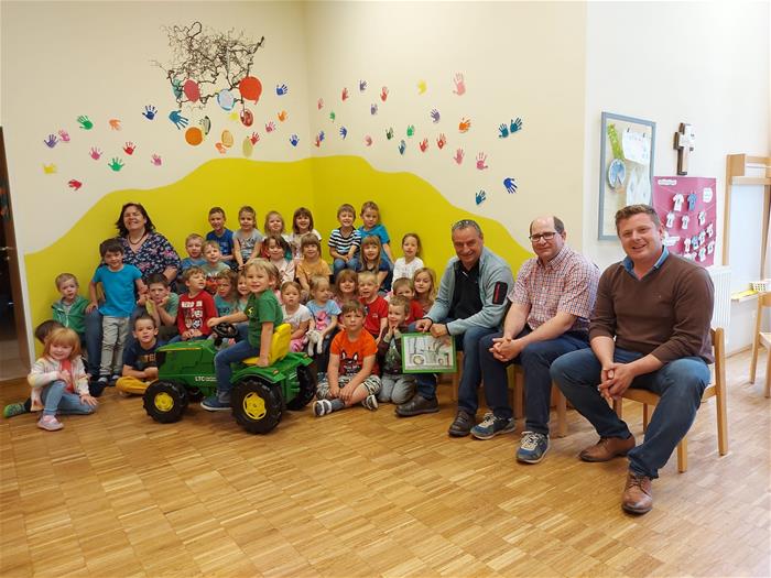 Nachdem ein Kind unseres Kindergartens jeden Tag wunderbare grüne Traktoren zeichnet, kamen wir auf eine Idee: Wir schicken die schönste Traktoren Zeichnung an die Fa. John Deere, um sie gegen einen Trettraktor für unsere Garten einzutauschen.