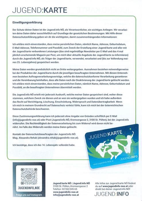 Die Jugendkarte NÖ steht allen Jugendlichen zwischen 14 und 24 Jahren kostenlos im Scheckkartenformat zur Verfügung.