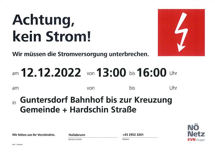 Achtung, kein Strom 12.12.2022 13.00-16.00 Uhr