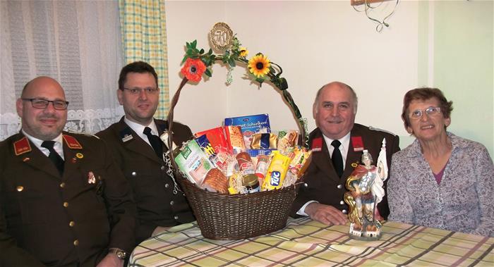 Eine Abordnung der Feuerwehr lies es sich aber auch nicht nehmen, den Jubilar zu Hause zu besuchen um ihn auf das Herzlichste zu gratulieren. Mit im Gepäck ein prall gefüllter Geschenkkorb und eine Statue des heiligen Florian.