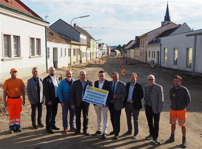 Bürgermeister Mag. Roland WEBER lud die Vertreter des Straßendienstes ebenso, Nationalratsabgeordnete Melanie ERASIM Msc. , sowie auch die Landtagsabgeordneten des Bezirkes Bgm. ÖkR Richard HOGL, Michael SOMMER und Mag. Georg ECKER, sowie seinen Vizebürgermeister Reinhard FLEISCHMANN ein, um die gemeinsame Baustelle des Bundeslandes Niederösterreich und der Marktgemeinde Guntersdorf zu besichtigen.