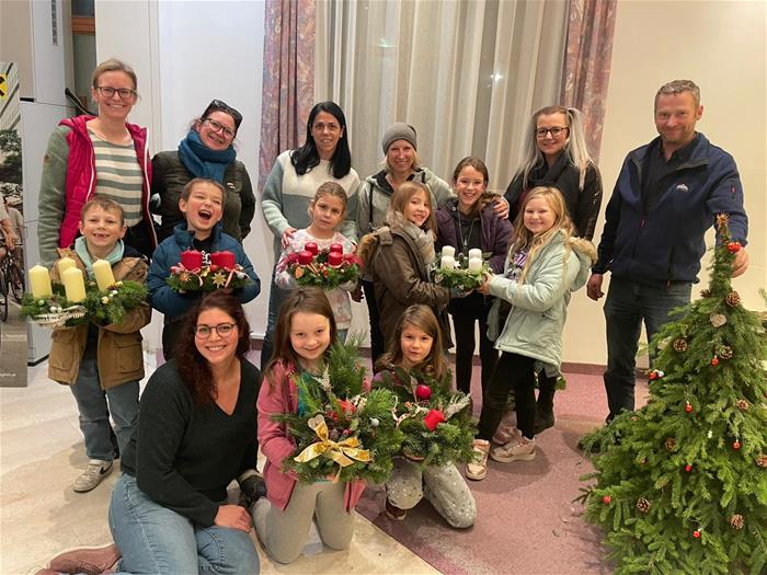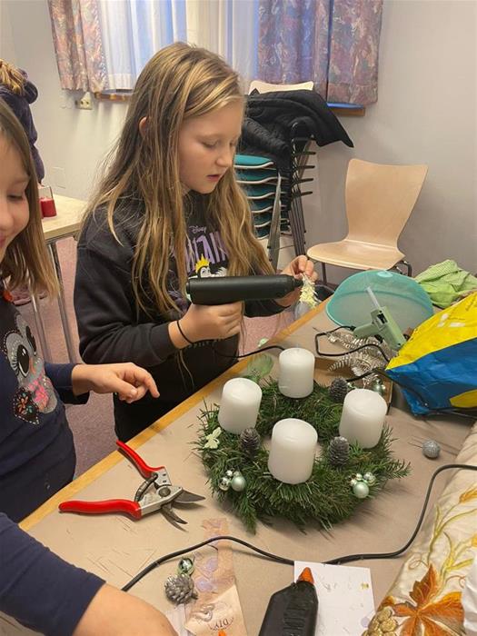 Die Schule durfte sich über drei wunderschöne Adventkränze freuen - einen für jede Klasse. Zusätzlich fertigten die Kinder auch einen besonderen Kranz für die Damen der Gemeinde an. Dieser war ein Dankeschön für die großartige Zusammenarbeit zwischen dem Elternverein und der Gemeinde sowie für die Unterstützung bei der Bereitstellung des Raika-Gebäudes, das ausreichend Platz zum Basteln bot.