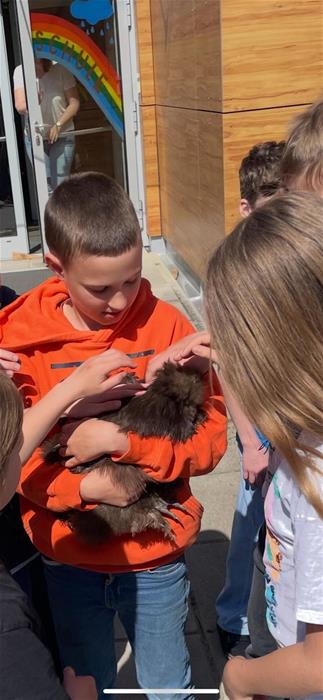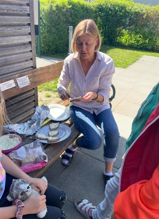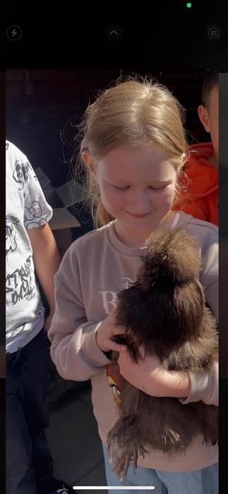 Louisa hielt ein Referat zum Thema Huhn. Deshalb durfte sie ihr Huhn namens Donner als Anschauungsobjekt mitbringen. Die Kinder beobachteten wie das Seidenhuhn glücklich durch die Wiese spazierte und jeder der wollte durfte das Hühnchen halten. Zum Abschluss gab es Eieraufstrich mit frischem Angenbauer Brot. Natürlich selbstgemacht von Louisa, aus Eiern von ihren glücklichen Hühnern.