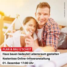 Wir möchten Sie gerne auf unsere Online-Veranstaltungsreihe "Plan und bau g'scheit - vom Grundstückskauf bis zum Traumhaus" aufmerksam machen.