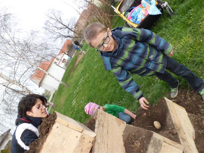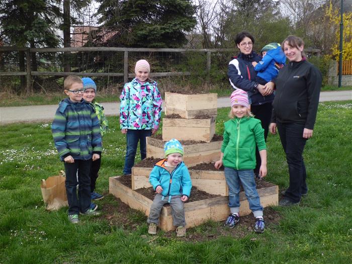 Ein Teil der Kinder von Großnondorf haben diese dann mit Hingabe bepflanzt.