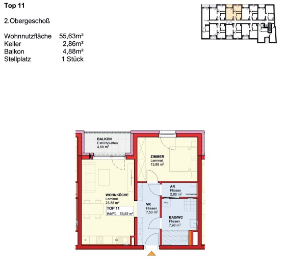 Ein praktischer Arzt befindet sich direkt im Erdgeschoß, die Wohnungen sind barrierefrei und somit besonders bequem erreichbar.